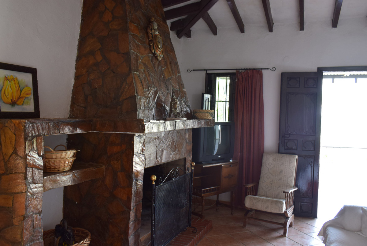 From the terrace you enter the living room with a fireplace. This is the antique part of the house with the original, antique windows, shutters, doors and beams. From the living room you can oversee the terrace and the landscape.
