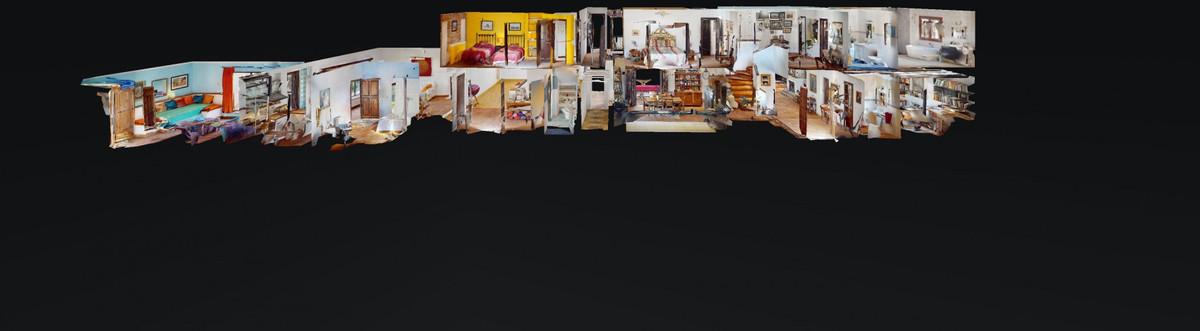 Are you looking for an oasis in harmony with nature? A place of peace and relaxation, where time runs a little slower? Yes?! Then we would like to show you this fantastic villa, in the mountains of Torrox. It offers an imposing, grand main house, a separate, small guest house and a pool, as well as 5,569 m2 of land, which is predominantly flat and thus offers countless possibilities. The layout of the property makes it possible to use the main house as two independent living units, with separate entrances. This fabulous property is perfect as a multi-family home, B&B or as an investment opportunity for a yoga center, event location, dance school or meditation temple.... An almost completely paved driveway leads you to a concrete parking area, which is partially covered. On this level is the charming guest cottage with its own covered terrace. It is equipped with a cozy, open living/dining area with a bed, a kitchen and a bathroom. The fireplace provides comfortable warmth in the cooler months. A driveway, as well as stairs, lead to the lower level. Another heavy wooden door with an iron horse door knocker grants entry into the spacious, imposing living area with fireplace, of the first part of the house. To the right is a guest toilet. Next to this is a room which is currently used as an office/library. It can also be heated to a comfortable temperature in the cooler seasons with the fireplace. We have adjacent a small, glazed room from which you can enjoy the view of the surrounding countryside. The large terrace at the front of the house offers breathtaking views of the famous white village of Frigiliana and the Sierra de Tejada in the background. Thanks to the hillside location, the hollow space under this terrace can still be closed and create more living space, if needed. From the living room, also with access to the terrace, one enters the spacious open kitchen with dining area. The interplay of traditional and modern has been perfectly achieved here. A glass patio door leads to the beautiful u-shaped and typical Andalusian courtyard with a fountain. On the second floor of the house there are three bedrooms and two bathrooms. The master bedroom has a large, modern bathroom with its own sauna, as well as a bathtub and shower. From two of the bedrooms there is access to an enchanted u-shaped balcony with views down into the Andalusian courtyard. Its wooden beams and plantings make it feel like you've stepped into another era. A corridor leads from this balcony to the second part of the house. On the second floor there is a bedroom with another fireplace, called the Sunroom because of its wall color. A staircase leads down to a huge open space with a large flat skylight that lets in natural light. The space can be used for a wide variety of possibilities. As a dance studio, atelier, or conference room. A feel-good temperature can also be created here with a great fireplace. On this level we also have a large heavy wooden door, the separate entrance to this part of the house. Right next to the entrance area there is a fully equipped bathroom. Through an open arch you enter a living area with a small, charming kitchen. Through almost floor-to-ceiling windows, you look out onto an idyllic pond and out into the countryside. There is another bathroom and two bedrooms, both with access to the outdoor area. The outdoor area includes a pool, many terraces with seating, a small vegetable garden and some olive trees. The bodega, or wine cellar, adds the finishing touches to the mansion and guarantees the right temperature for your wine. We are pleased to be able to present this dream property to you soon, either personally or via virtual viewing. Because this world, it is unique - just like our Axarquía. In Andalusia. On the Costa del Sol. Here, on the sunny side of life...