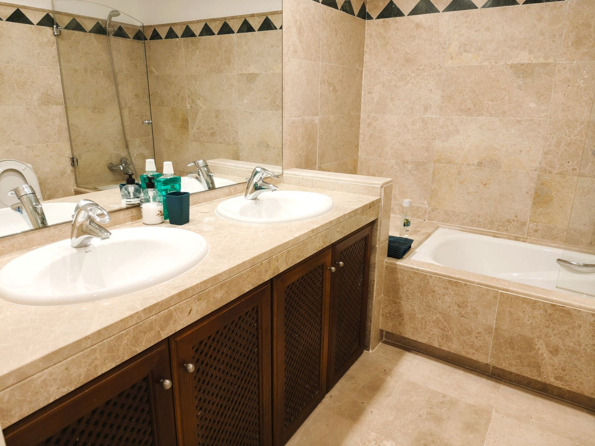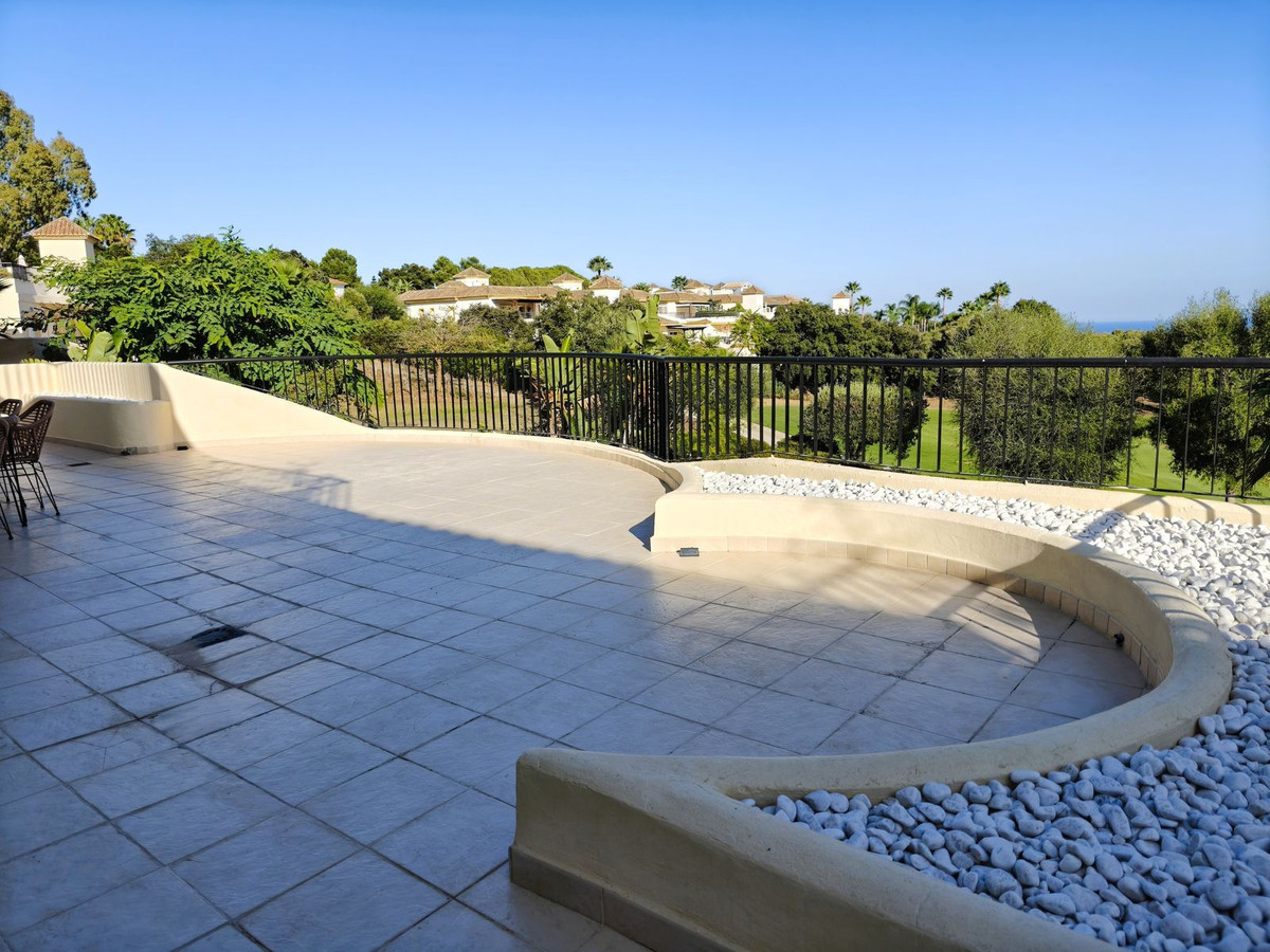 Dit uitstekende appartement met drie slaapkamers op de eerste verdieping is gelegen in de prestigieuze San Roque Club en combineert comfort, stijl en een onovertroffen locatie. De woning beschikt over een ruime woon- en eetkamer, een grote, volledig uitgeruste keuken, twee badkamers, een gastentoilet en een spectaculair terras van 77 m² met gloednieuwe gemotoriseerde zonneschermen, met een prachtig uitzicht op de golfbaan, de zee en het omliggende landschap. De hoofdslaapkamer beschikt over een en-suite badkamer en directe toegang tot het hoofdterras, terwijl de twee andere slaapkamers toegang bieden tot een tweede terras.