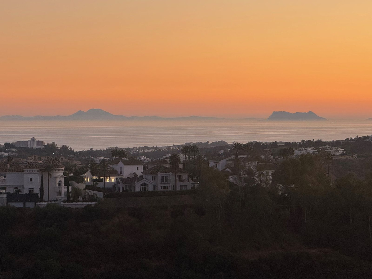 As you approach the entrance, you go up a few steps that lead to the front door. Upon entering, you’ll be greeted by a spacious and light-filled dining and living area, accentuated by floor-to-ceiling windows that create an inviting atmosphere. Step outside to your expansive 22m² covered terrace, which features glass curtains, allowing you to enjoy the stunning panoramic views of the area of Benahavís, the majestic nearby mountains, the iconic Rock of Gibraltar, and the sparkling sea. The beautiful open South-West views provide a sense of comfort all year round to the mind and soul; on clear days, you can even catch a glimpse of the African coast and the Atlas Mountains—truly breathtaking! The sunsets from here are spectacular.