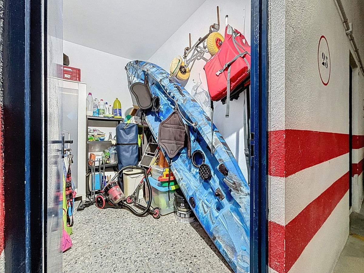 The house has a bedroom, a bathroom, and a cozy living-dining room with an open kitchen, which gives access to a balcony with sea and mountain views. Thanks to its orientation and layout, the apartment receives plenty of natural light throughout the day. The building offers a communal swimming pool to cool off in summer, as well as a storage room and underground garage space, which provides comfort and extra space. Its location is unbeatable: a few steps from the beach, and close to shops, schools and all the necessary services for day-to-day life. An ideal home both as a permanent residence, second home or investment on the Costa del Sol. The property has a tourist rental license, which makes it an excellent investment opportunity. We are delighted to be able to present this property to you soon, either personally or via virtual viewing. Because this world is unique - like our Axarquía. In Andalusia. On the Costa del Sol. Here, on the sunny side of life...
