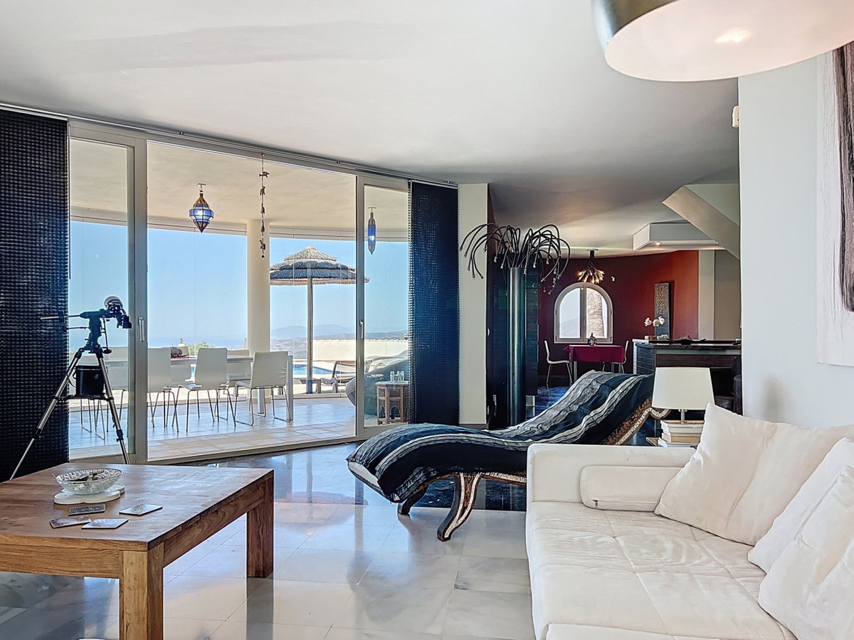 Imagine waking up each day to the soothing embrace of the Mediterranean in this exquisite villa. A true architectural masterpiece, this home offers an unparalleled lifestyle, seamlessly combining spacious interiors with awe-inspiring vistas that stretch all the way to the horizon. The living area welcomes you with an abundance of natural light, thanks to floor-to-ceiling sliding glass doors that perfectly frame the mesmerizing views of the azure sea. The open-plan design creates an ideal flow for both intimate gatherings and grand entertaining, blurring the lines between indoor luxury and outdoor paradise. For the culinary enthusiast, the gourmet kitchen is a dream come true, equipped with state-of-the-art appliances and ample space for creating memorable meals. Dine al fresco on the expansive terrace, where the gentle sea breeze enhances every moment. The lavish master suite, spanning 32.5 m2, offers a tranquil retreat with panoramic ocean views. Start your day in the spa-like bathroom, a true testament to luxury and comfort. The private balcony ideal for sipping morning coffee or enjoying an evening cocktail as you watch the sun dip into the sea. At the outside, the terracotta-tiled outdoor terrace is your personal oasis. Bask in the warm Spanish sun, host unforgettable parties, or simply lose yourself in the mesmerizing views of the coastline. Beyond the beauty, this villa offers a rare opportunity for those looking to start a business, like a B&B. With 4 rentable rooms, each with its own bathroom and entrance, the property has already been successfully operated as a B&B, receiving only glowing reviews. In addition to the rental rooms, theres a private bedroom on the first floor with its own bathroom, and another bedroom with a bathroom in the basement. The fully equipped kitchen inside and the wonderful outdoor kitchen provide all the necessary amenities for running a successful business, while the large underground garage offers plenty of space for storage. Located in Algarrobo, Málaga, this property ensures easy access to world-class amenities, pristine beaches, and rich cultural experiences, all while offering the perfect setting to indulge in Mediterranean living. Whether you're looking for a luxury family home, a business opportunity, or simply a slice of paradise, this villa delivers on every front. This is more than just a home; its a lifestyle. Embrace the pinnacle of Mediterranean living in this extraordinary villayour dream of owning a piece of paradise is now within reach. Dont miss the chance to elevate your life to new heights of luxury, beauty, and opportunity. We are pleased to be able to present this dream property to you soon, either personally or via virtual viewing. Because this world, it is unique - just like our Axarquía. In Andalusia. On the Costa del Sol. Here, on the sunny side of life...